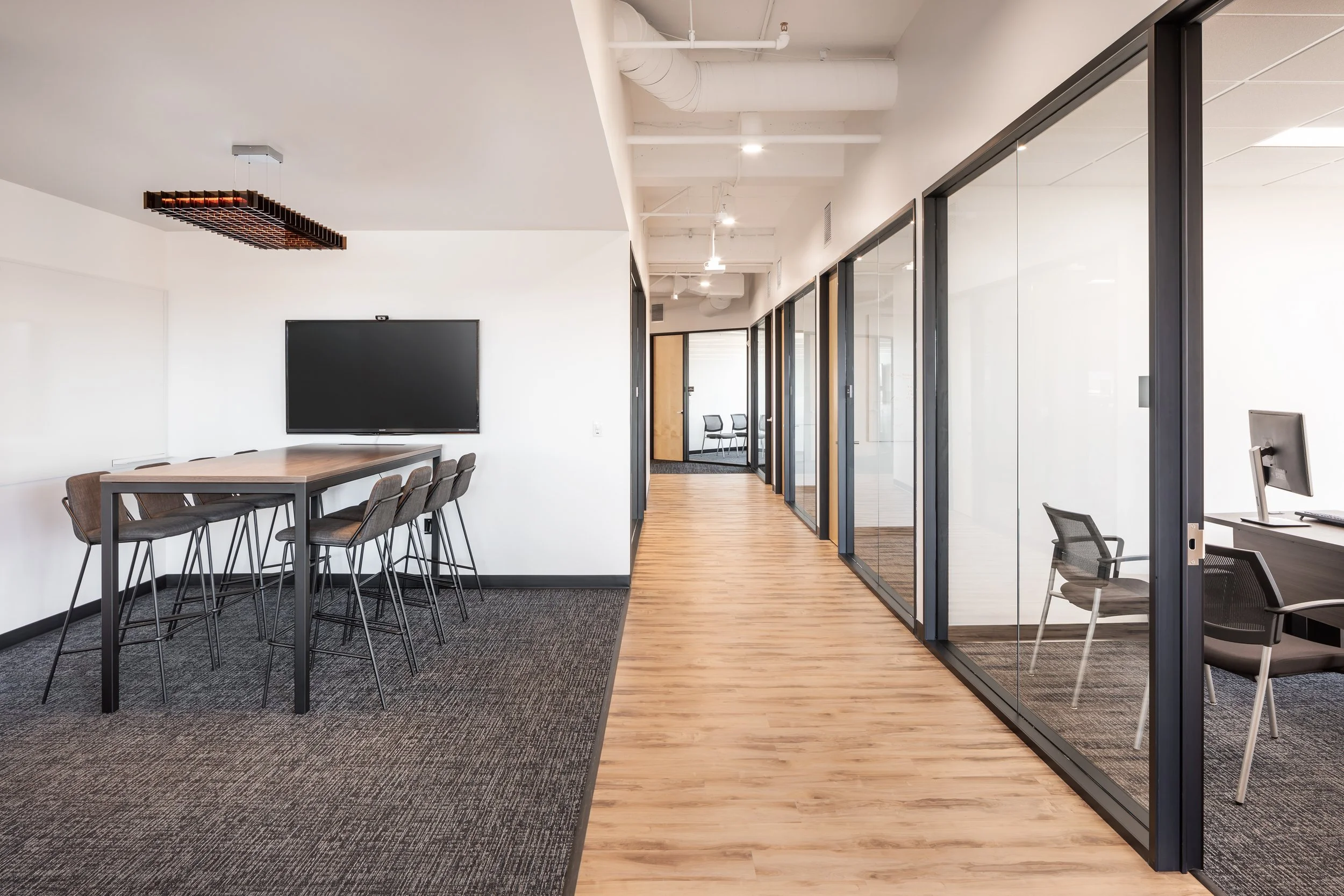 Located at the center of a developing life science and technology hub our Marketo office renovation project features expansive open office areas and diverse meeting spaces offering tenants flexibility and choice.